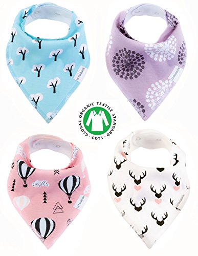 Baby Bandana Drool Bibs Organic 4 Pack for Girls with Snaps, Absorbent Soft Cotton for Teething Feeding Baby Shower Gift Scarf Bib (Pink Purple Coral Blue Heart) From Lil Dandelion Reviews